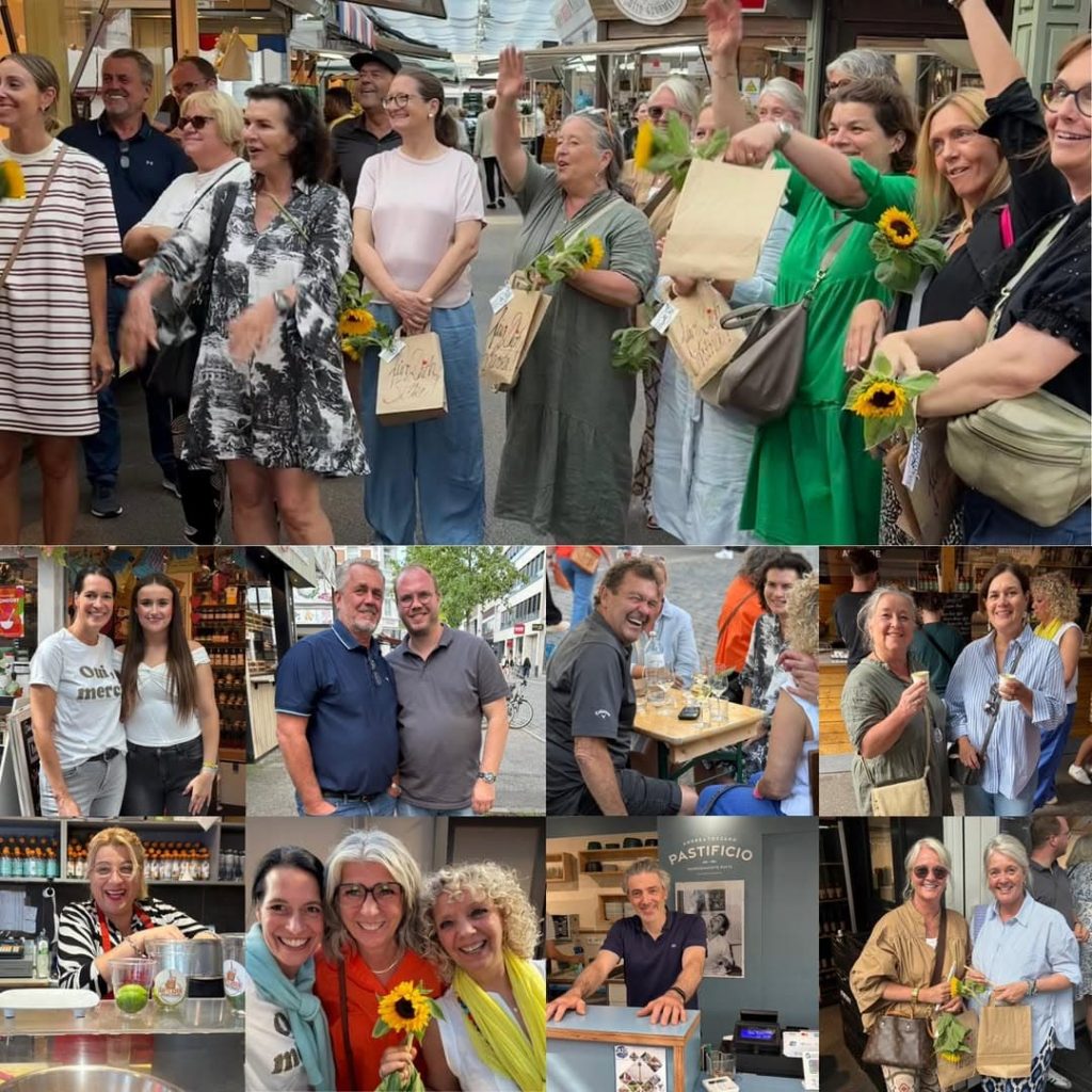 Die liebe Inka Olek vom Stand โInka & Mehlโ fรผhrte uns charmant รผber den Platz. An den Stรคnden erwartete uns dann das volle Genussprogramm: Matjes/Lachs, Sushi, Smoothies & Nรผsse, kรถstlicher Kรคse, zartes Steak, feiner Schinken, beste Oliven, Sonnenblumen to go, Quiche, kreative Pasta-Kreationen und eine duftende Essig-&-รl-Verkostung. Alles wurde mit Groรzรผgigkeit gespendet โ von den fantastischen Standbetreibern des Carlsplatzes, ohne die dieser Walk nicht mรถglich wรคre. ![]()